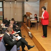 - Bożena Bednarek Michalska podczas IV Konferencji EBIB Open Access “Internet w Bibliotekach”, która odbyła się 7-8 grudnia 2007 r., w Bibliotece Uniwersyteckiej w Toruniu. Fotografia ze zbiorów Biblioteki Uniwersyteckiej w Toruniu.