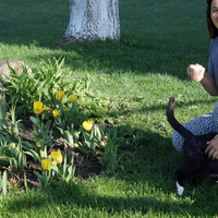 - Bożena Bednarek-Michalska z kotką Fruzią w ogrodzie w Pluskowęsach
