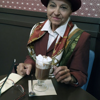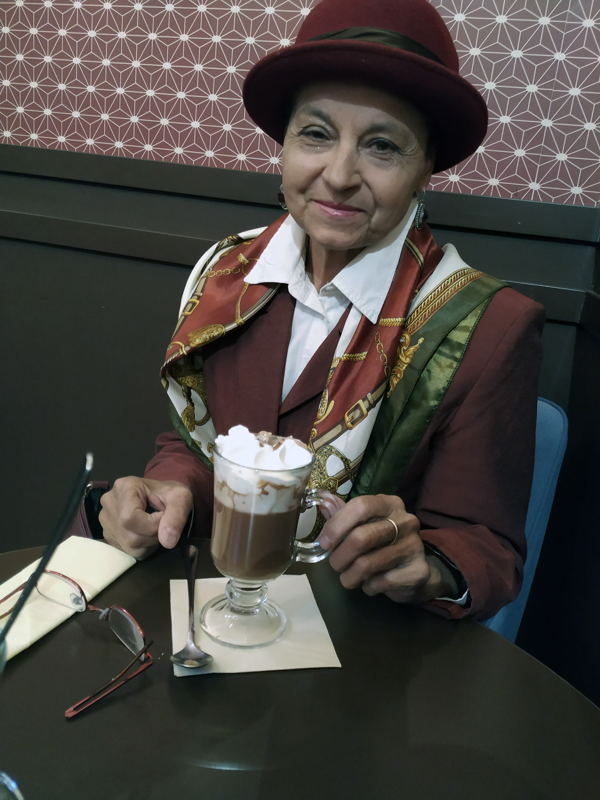 Bożena Bednarek-Michalska w Pijalni Czekolady przy ul. Szewskiej w Toruniu (jesień)