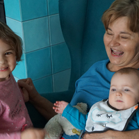 Bożena Bednarek-Michalska z wnuczkami Kalinką i Adą w domu córki Antoniny w Czułowie pod Krakowem