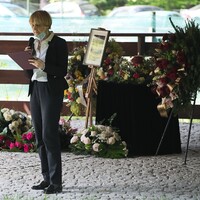 Odczytanie listu pożegnalnego Stowarzyszenia Bibliotekarzy Polskich przez kust. Jolantę Szewczak. Barbarka k. Torunia, 14 maja 2021 r. Fot. Tomasz Dorawa. Fotografia ze zbiorów Biblioteki Uniwersyteckiej w Toruniu