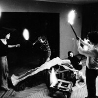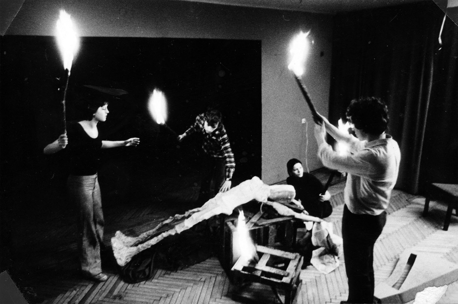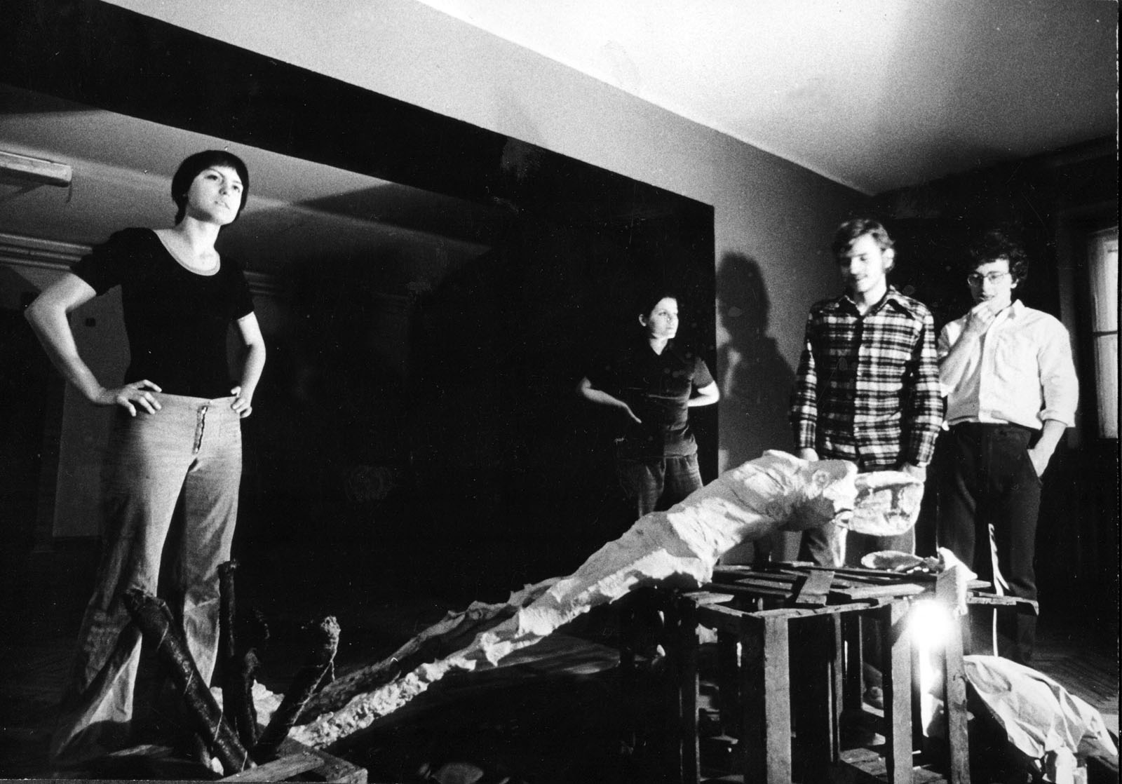 - Próba spektaklu studenckiego teatru TUBB do sztuki “W marszu”, 1979 r. Bożena Bednarek-Michalska z Haliną Bednarek, Ryszardem Biberstajnem i Jackiem Czarnikiem. Fot. Autor nieznany. Archiwum prywatne rodziny Michalskich.