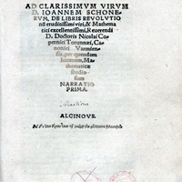 Ad Clarissimvm Virvm D. Ioannem Schonervm, de Libris Revolvtionu[m] eruditissimi viri, et Mathematici excellentissimi, Reuerendi D. Doctoris Nicolai Copernici Torunnaei, Canonici Varmiensis, per quendam Iuuenem, Mathematicae studiosum Narratio Prima