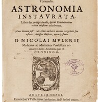 Nicolai Copernici Torinensis Astronomia Instavrata, Libris sex comprehensa, qui de Revolutionibus orbium coelestium inscribuntur. Nunc demum post 75 ab obitu authoris annum integritati suae restituta, Notisque illustrata, opera [et] studio D. Nicolai Mvlerii Medicinae ac Matheseos Professoris ordinarij in nova Academia quae est Groningae