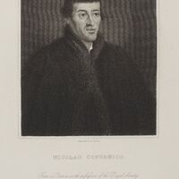 Wizerunek Mikołaja Kopernika wzorowany na obrazie ze zbiorów Towarzystwa Królewskiego w Londynie. Pierwozór namalował gdański artysta Friedrich Lohrmann, zaś dzieło podarował dla Royal Society wybitny przyrodnik, lekarz i astronom, również gdańszczanin, Mateusz Nataniel Wolf. Sygnatury: „Engraved by E. Scriven”, pod wizerunkiem uczonego „NICOLAO COPERNICO”, niżej „From the Picture in the possesion of the Royal Society / presented by dr Wolf of Dantzich June 6.1776”, poniżej „Under the uperintendance of the Society for the Diffusion of Useful Knowledge. / London Published by Charles Knight Pall Mall East”.