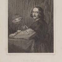 Rycina powielająca domniemany wizerunek Mikołaja Kopernika z obrazu olejnego z lwowskiej kolekcji Lubomirskich przypisywany Marco Basaitiemu, włoskiemu mistrzowi doby renesansu. Data 1512