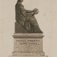 Pomnik Mikołaja Kopernika w Warszawie dłuta Bertela Thorvaldsena. Monument usytuowany w Warszawie przed Pałacem Staszica, odsłonięty w 1830 r. Pomnik ukazany od strony bocznej. Astronom ujęty w pozie siedzącej, w lewej ręce trzyma sferę armilarną, a prawą wskazuje na nią. Napisy: „NICOLAO COPERNICO GRATA PATRIA” – na cokole monumentu. U dołu z prawej strony ryciny sygnatura /F.(rydryk) Dietrich sculp/. W lewym dolnym rogu kartonu exlibris: „/COPERNICANA JANINY GARDZIELEWSKIEJ/”, nad napisem rysunek: Słońce, Ziemia z orbitą i Księżycem, miedzioryt, wym. 3,8 x 2,5 cm