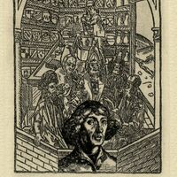 Postać astronoma, według rysunku Tobiasa Stimmera z 1587 r., popiersie zwrócone w prawo, na tle dysputujących uczonych w renesansowej pracowni. Autorem prac jest Zbigniew Janeczek, grafik, wydawca. Urodzony w Łodzi, gdzie studiował i prowadził działalność artystyczną. Początkowo tworzył małe formy graficzne, głównie ekslibrisy. Od lat zajmuje się ilustrowaniem książek.