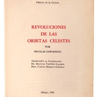 Pierwszy przekład „De revolutionibus” na język hiszpański w tłumaczeniu Manuela Tagüeňa Lacorte i Carlosa Moreno Caňadas.