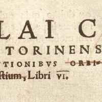 - Fragment karty tytułowej pierwszego wydania De revolutionibus z przekreślonymi ręką właściciela książki Johannesa Aurifabra słowami „orbium coelestium” w egzemplarzu z Biblioteki Kórnickiej, sygn. Cim. F. 4072