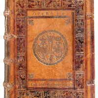 Górna okładzina pierwszego wydania De revolutionibus z superekslibrisem królewskim Zygmunta Augusta