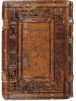 Dolna okładzin egzemplarza De revolutionibus z królewskiej biblioteki Zygmunta II Augusta z wytłoczonym tekstem „Sigismundi Augusti Regis Poloniae Monumentum 1551”; Biblioteka XX. Czartoryskich, sygn. 2338 III A Cim Saf -