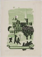 "Wesołych Świąt - Kolędnicy" - Grafika użytkowa drzeworyt barwny
