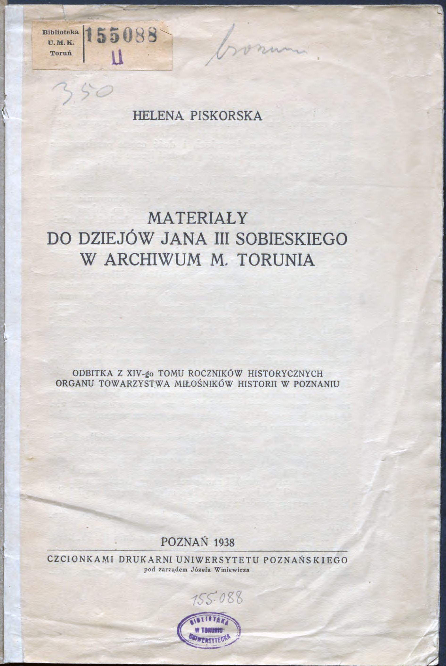 Materiały do dziejów Jana III Sobieskiego w Archiwum m. Torunia