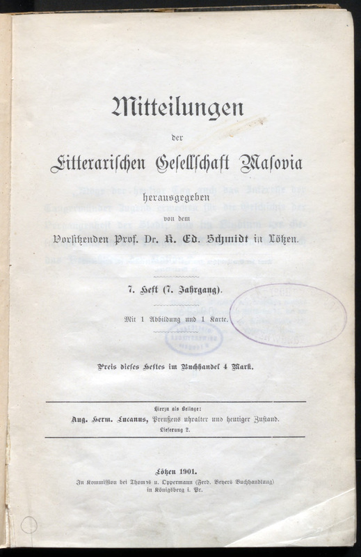 Mitteilungen der Litterarischen Gesellschaft Masovia 1901 Jg. 7 H. 7