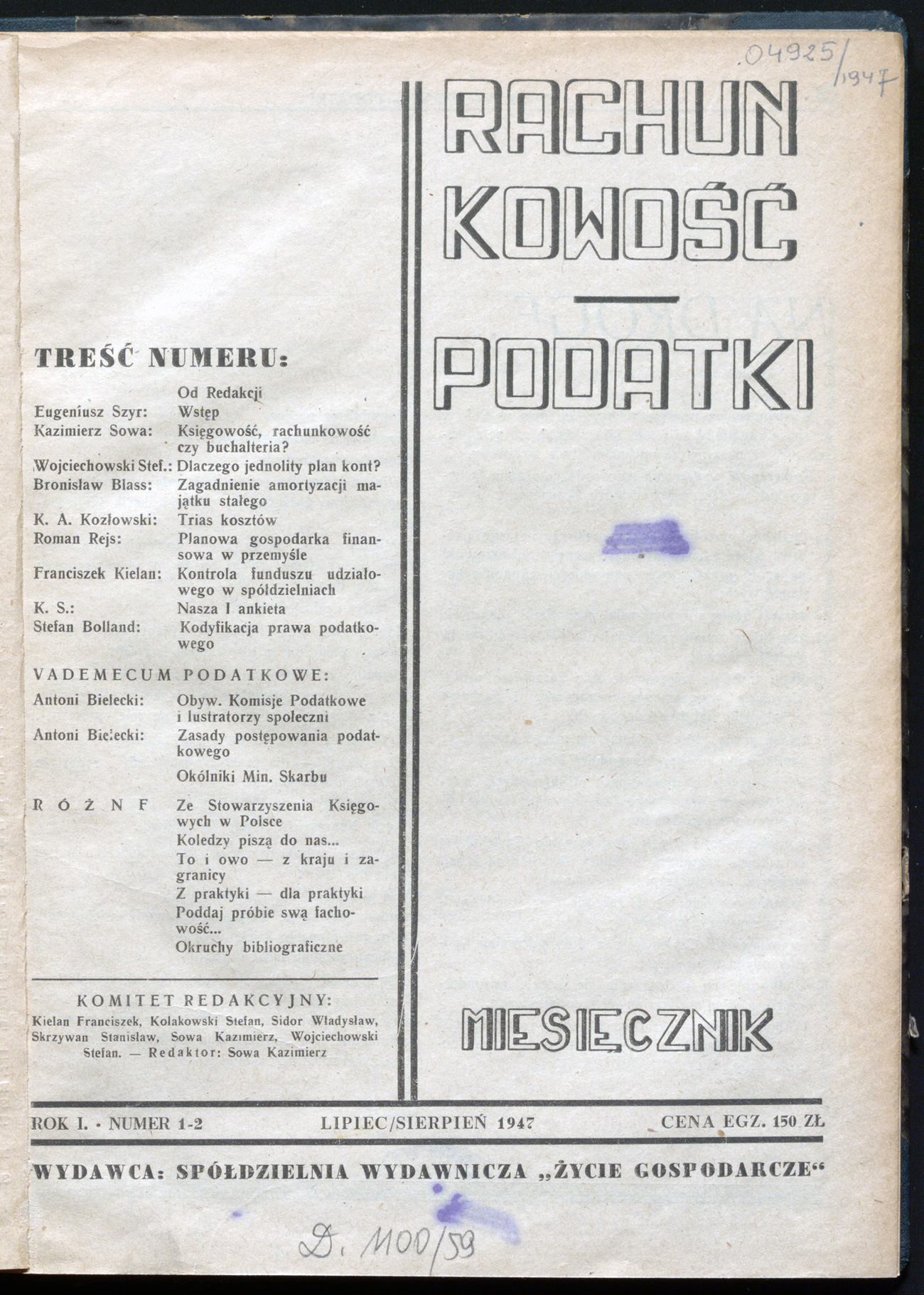 Rachunkowość - Podatki 1947, R. 1 nr 1/2