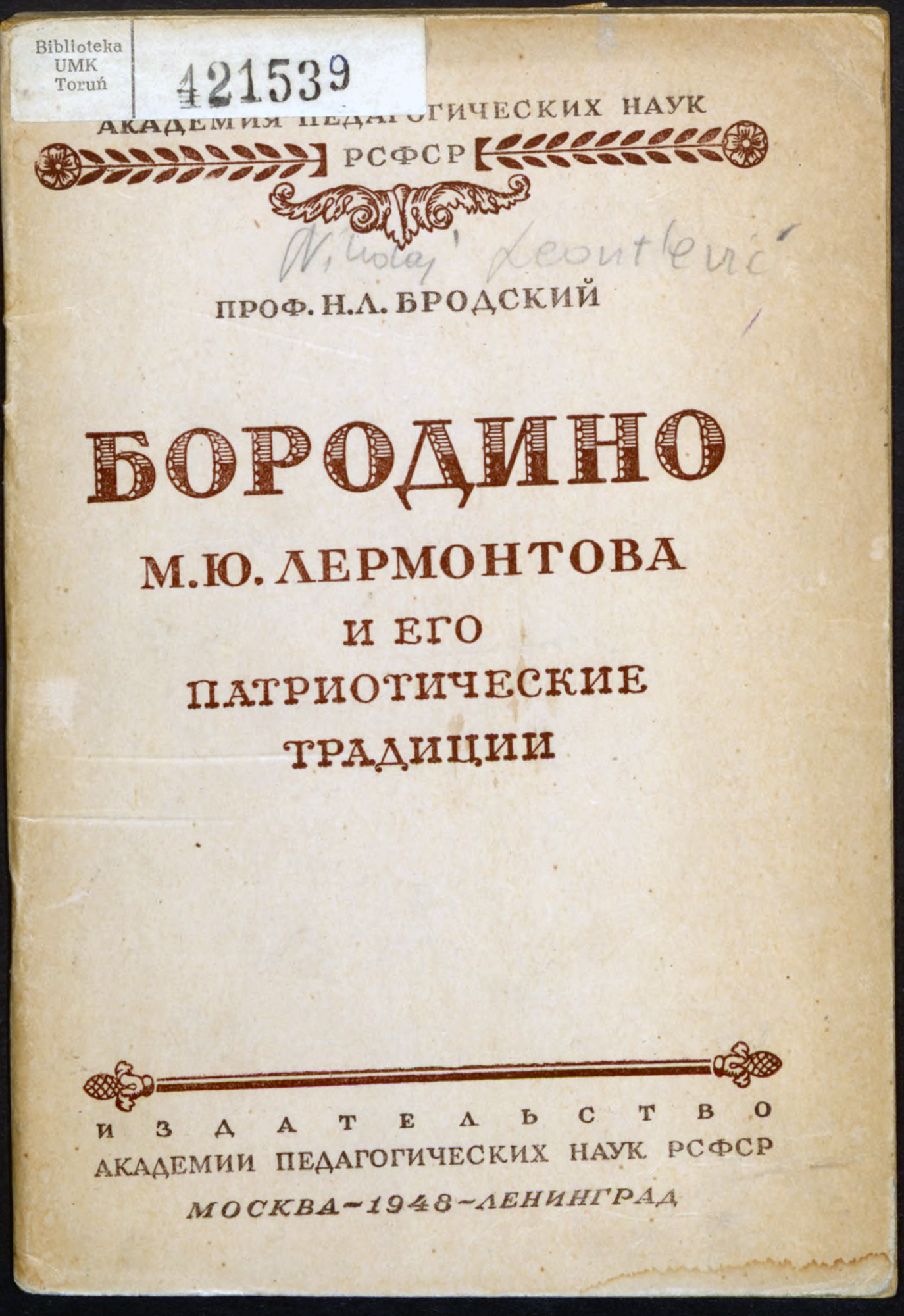 "Borodino" M. Ŭ. Lermontova i ego patriotičeskie tradicii