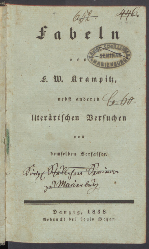 - Theodor Breiter, Städtisches Gymnasium zu Marienburg. Zu der am 21. März 1864 stattfindenden öffentlichen Prüfung aller Klassen, Marienburg (Malbork) 1864, s. 8.