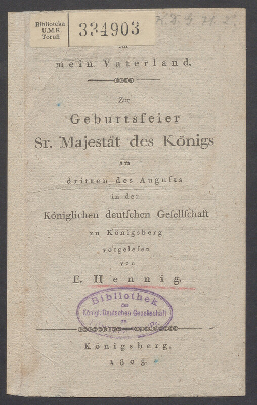 Opisywana jednostka jako fizyczna całość powstała w latach 50-tych XX w. podczas inwentaryzacji. Połączono wówczas dwie różne proweniencyjnie części; pierwsza to archiwalia pochodzące z Königliche Deutsche Gesellschaft w Królewcu, a druga to materiały Kurländische Gesellschaft für Literatur und Kunst w Mitawie. Błędnie założono, że obydwie części stanowią rękopisy pochodzące z Królewca
