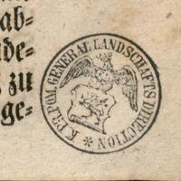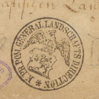 1. Pieczęć okrągła, w otoku nazwa instytucji: K[önigliche] Pr[eussische] Pom[mersche] Generallandschafts Direction, w centrum wizerunek pruskiego orła trzymającego w pazurach kartę z przedstawieniem pomorskiego gryfa