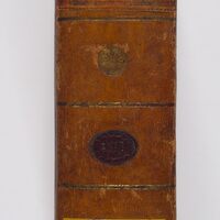 1. Pieczęć okrągła biblioteki Towarzystwa z jej nazwą: "Ex Biblioth[eca] Soc[ietatis] Liter[arum] Curon[ensis]"