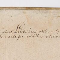 3. Dewiza proweniencyjna: Viuere qui voluit Labesius vtilis orbi | Libro hoc ante suo redditur vtilior (z wariantami: wymianą v/u [np. Viuere / Vivere], s/ss [np. Labesius / Labessius], interpunkcją lub bez niej, niektórymi wyrazami zapisanymi niekiedy w całości dużymi literami)