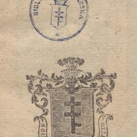 12. Pieczątka prostokątna: Peczara, Franciszek Potocki. Ekslibris Biblioteka Teplicka.