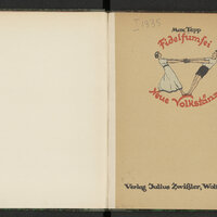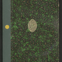 6. Sygnatura na górnej okładzinie lub grzbiecie w części drukowana, w części pisana odręcznie atramentem na prostokątnej nalepce ze ściętymi narożnikami z nadrukowaną kolorową obwódką.