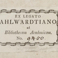 9. Exlibris donacyjny z nazwiskiem darczyńcy: Ex legato ahlwardtiano ad Bibliothecam Academicam. No. ...