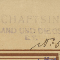 3. Fioletowa pieczątka WIRTSCHAFTSINSTITUT FÜR RUSSLAND UND DIE OSTSTAATEN E.V.; pod pieczątką odręczny zapis wykonany czarnym tuszem, składający się ze skrótu „No.”, cyfr arabskich i kropki. Przykłady: No. 59.; No. 2-a