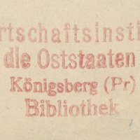 - Pieczątka: Wirtschaftsinstitut für die Oststaaten e.V. Königsberg (Pr) Bibliothek