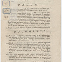 - Teczka zawiera materiały wytworzone na przestrzeni z górą stu lat, najwcześniejszy druk pochodzi z 1764, najmłodszy dokument z 1879 r. Wszystkie materiały to albo druki albo kopie powielone rękopisów, oryginalnie rękopiśmienne są tylko notki marginalne