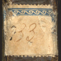 - Sygnatury dawne: 29 ołówkiem (na wyklejce górnej okładziny). „Ząbkowana” naklejka z drukowaną niebieską ramką, wewnątrz sygn. 33 (na grzbiecie). Na karteczce doklejonej do wyklejki dolnej okładziny sygnatura nadana w BUMK: Dep. Las. 29.