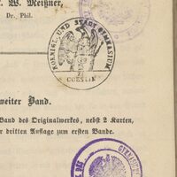 11. Owalna pieczątka: Staatl. Gymn. u. Oberrealschule Musikbücherei Köslin (fioletowa) -