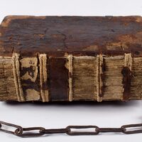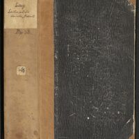14. Grzbiet książki z sygnaturą oraz skróconym opisem