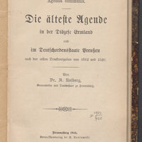 - Die älteste Agende in der Diözese Ermland und Deutschordensstaate Preussen : nach den ersten Druckausgaben von 1512 und 1520