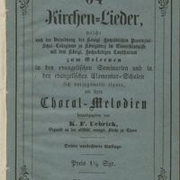 - 64 Kirchen-Lieder, welche nach der Verordnng des Königl. Hochlöblichen Provinzial - Schul - Collegiums zu Königsberg im Einverständnisse mit dem Königl. Hochwürdigen Consistorium zum erlernen in den evangelischen Seminarien und in den evangelischen Elementar=Schulen sich vorzugsweise eignen: mit ihren Choral-Melodien