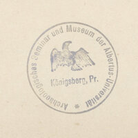 - Okrągła pieczęć na awersie tablic: Archeologisches Semminar und Museum der Albertus-Universität Königsberg, Pr.