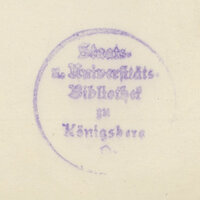 - Okrągła pieczęć na awersie tablicy: Staats. u. Universitäts. Bibliothek Königsberg