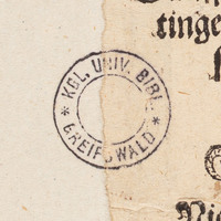 De Warheyt my gantz frömde ys De Trüwe gar seltzen, dat ys gewiß... - pieczątka okrągła: "KGL. UNIV. BIBL. * GREIFSWALD *" -