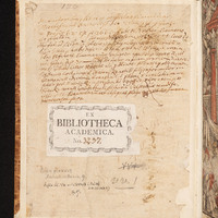 De Warheyt my gantz frömde ys De Trüwe gar seltzen, dat ys gewiß... - wyklejka górnej okładziny z ekslibrisem "Ex Bibliotheca Academica" -