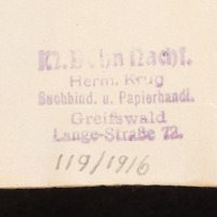 - 1. Superekslibris ; 2. ekslibris "Ex Bibliotheca Academica" ; 3. pieczątka okrągła "KGL. UNIV. BIBL. * GREIFSWALD *" ; 4. nalepka na grzbiecie z sygnaturą