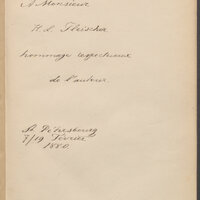 - Dedykacja autorska dla Heinrich Leberecht Fleischer (1801-1888), niemieckiego orientalisty ; naklejka królewieckiego introligatora Wilhelma Fuchsa.