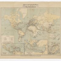 - Übersichtskarte der überseeischen Postdampfschiffslinien im Weltpostverkehr unter Berücksichtigung der Postverbindungen nach den aussereuropäischen Deutschen Konsulatsorten