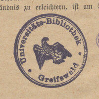 - Pieczątka okrągła: Universitäts-Bibliothek Greiswald