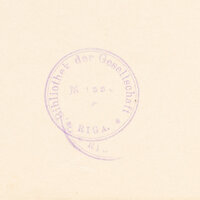 - Pieczątka okrągła: Bibliothek der Gesellschaft Musse Riga; pieczątka owalna: Bibliothek Der Musse