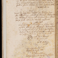 - Pieczęć Alexandra Friedensteina (1874-?), lekarza mieszkającego na Łotwie; opieczętowane są wszystkie karty rękopisu