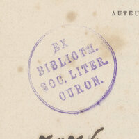 - Pieczęć okrągła: Ex Biblioth. Soc. Liter. CURON; piórem wpis "5016/2"