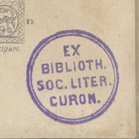 - Pieczęć okrągła: Ex Biblioth. Soc. Liter. CURON; piórem wpis "5016/2"
