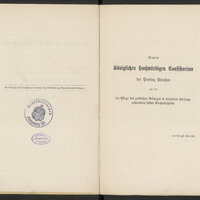 - Okragła niebieska pieczęć: Stadtbibliothek Königsberg (Pr) ; na okł. dedykacja własnoręczna Gottfrieda Döringa 1801-1869) - elbląskiego nauczyciela i historyka muzyki oraz dyrygenta kilku chórów i stowarzyszeń śpiewaczych w XIX w.:" Herrn Dr R. Reicke Hochachtungs voll von dem Herausgeber G. Doering" pieczątka prostokątna(na przedniej okładce, słabowidoczna): Aus der Bibliot. des Prof. Rudolf Reicke 1906... Rudolf Reicke (1825-1905), królewiecki filozof i znawca Kanta, historyk